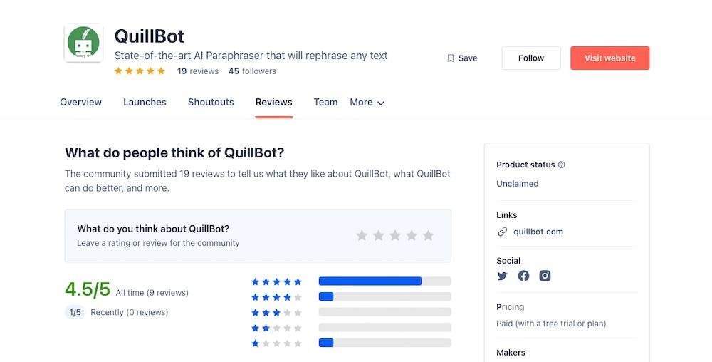 QuillBot has mixed reviews from users, reflecting a range of experiences with the tool.