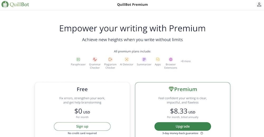 QuillBot offers both a free and premium plan, catering to different user needs and budgets.