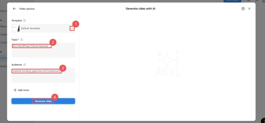 Any template can be used along with Synthesia’s AI tool to help create content for your video. By putting in some details, the platform will create a video script that you can directly edit.