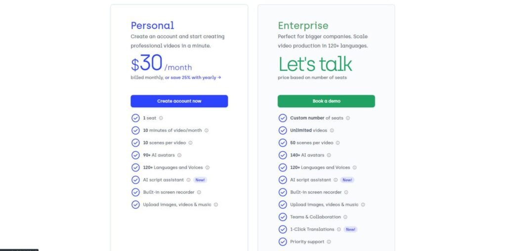 Whether you’re a solo content creator or part of a larger team, Synthesia offers pricing options that can align with your needs. But keep in mind that premium features come at a premium price.